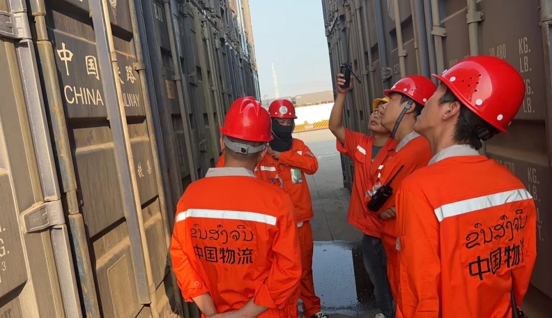 萬象南站,貨物列車緩緩駛?cè)胄盾嚬傻溃瑪?shù)十輛集裝箱卡車列隊等候;萬榮站,一輛輛裝載著鐵礦石的集裝箱卡車在作業(yè)人員指揮下陸續(xù)駛?cè)胴泩觯慌詈檎?,兩輛正面吊抓取集裝箱繁忙穿梭于貨物列車與堆場之間。身著橘紅色工服、頭戴紅色安全帽的工作人員,頂著烈日堅守崗位、配合默契,在異國他鄉(xiāng)展現(xiàn)出中國物流人良好的精神風貌和專業(yè)水平